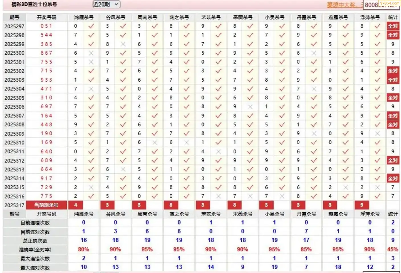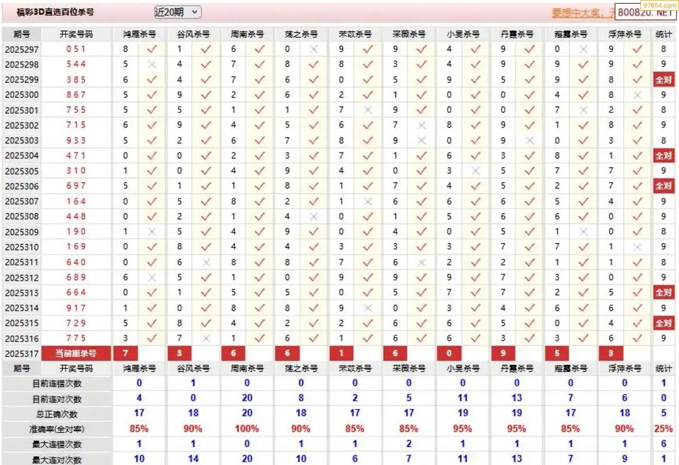 秋风过耳317期3D杀号 10连中