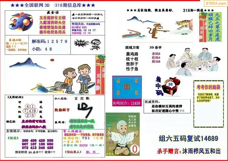 318期鑫马分析+杀手报3d图谜