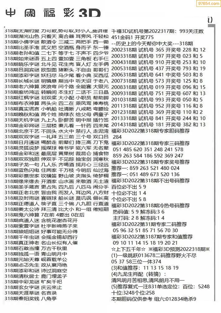 25年318期财神说彩3D综合图(原创)
