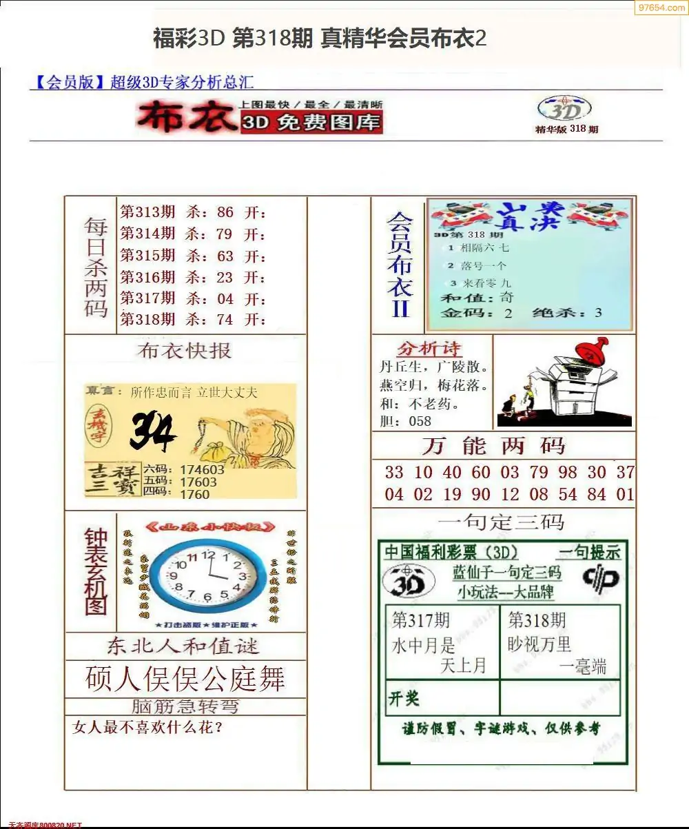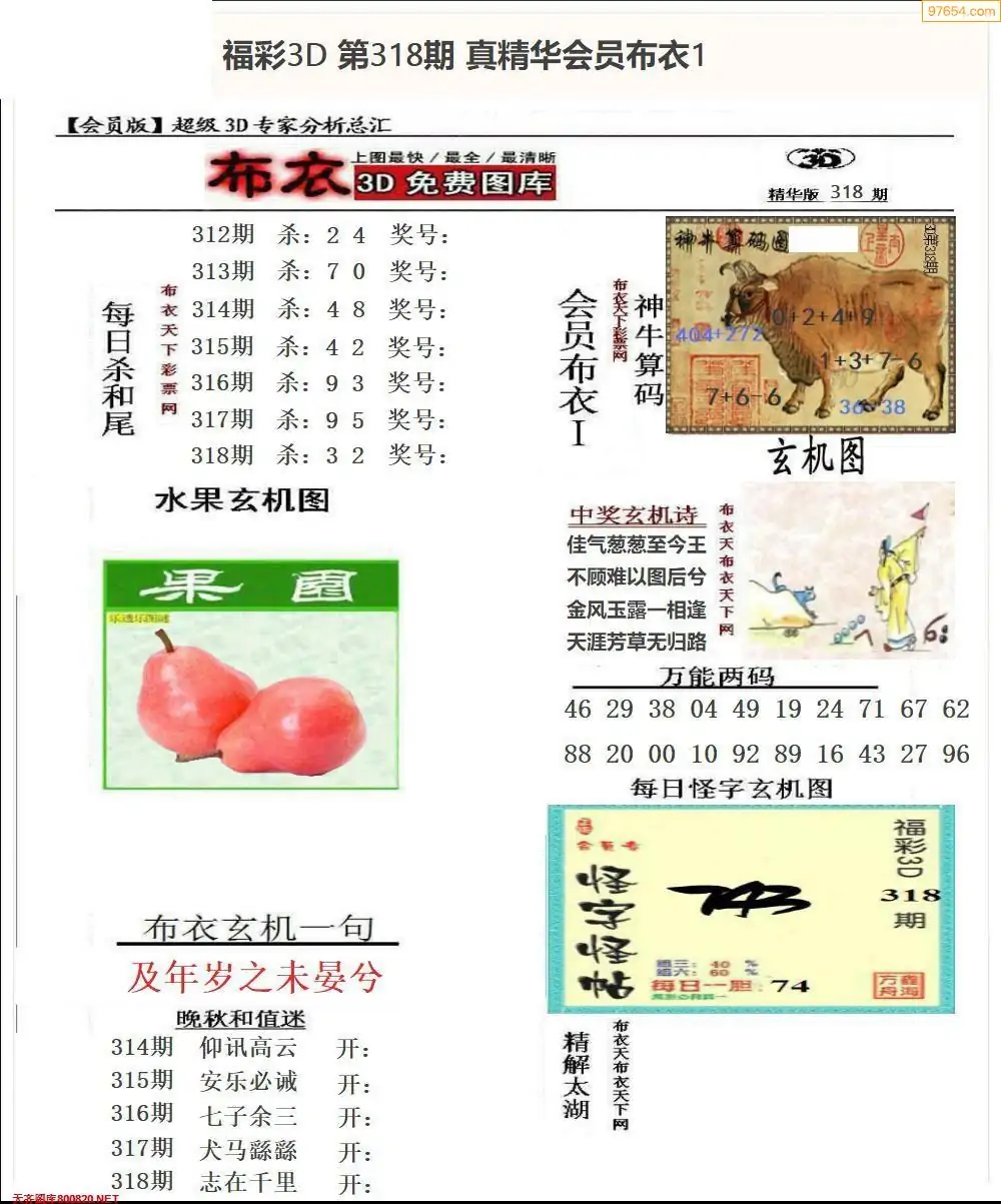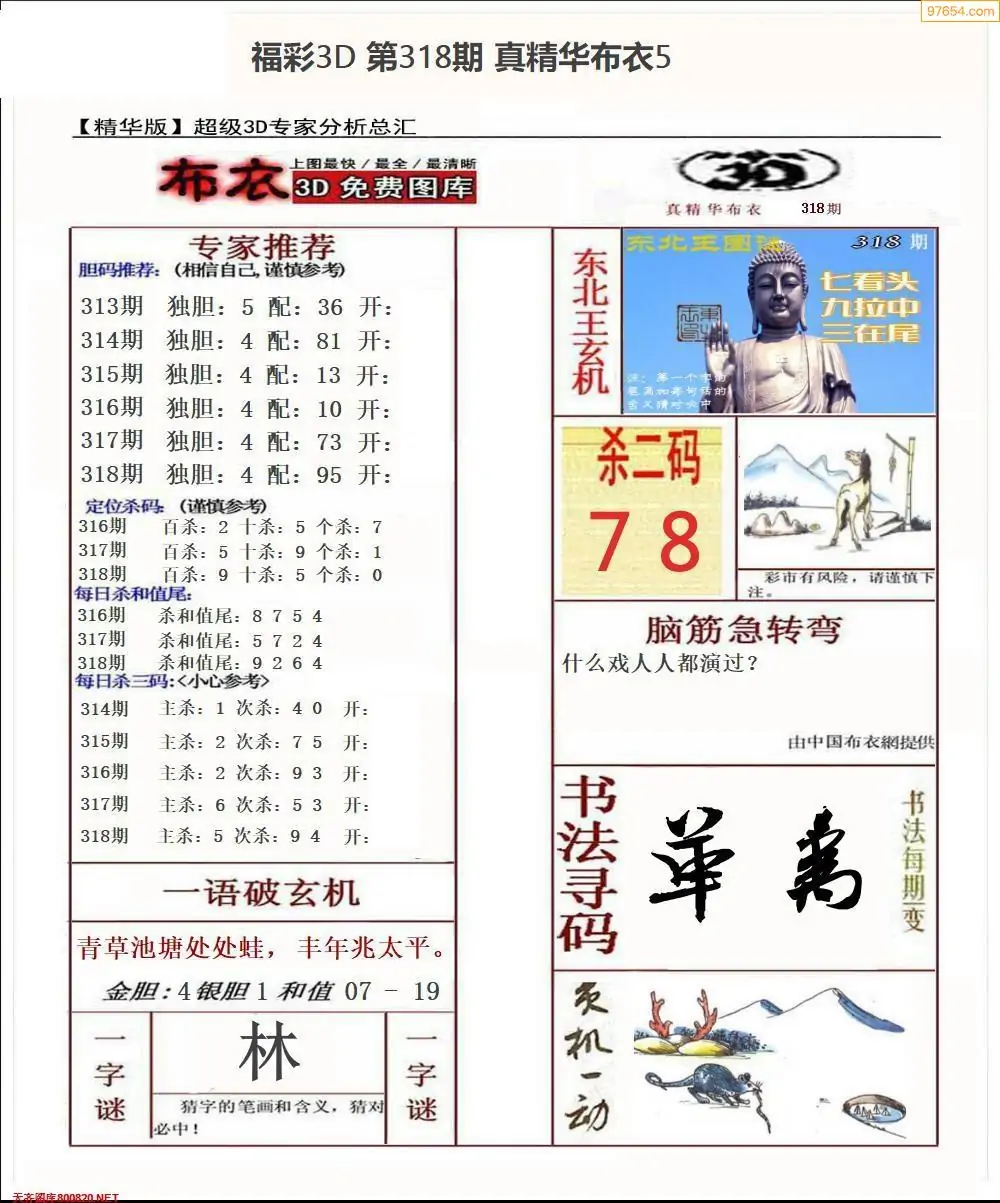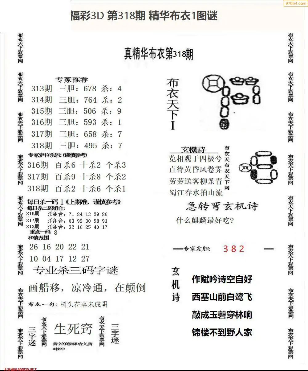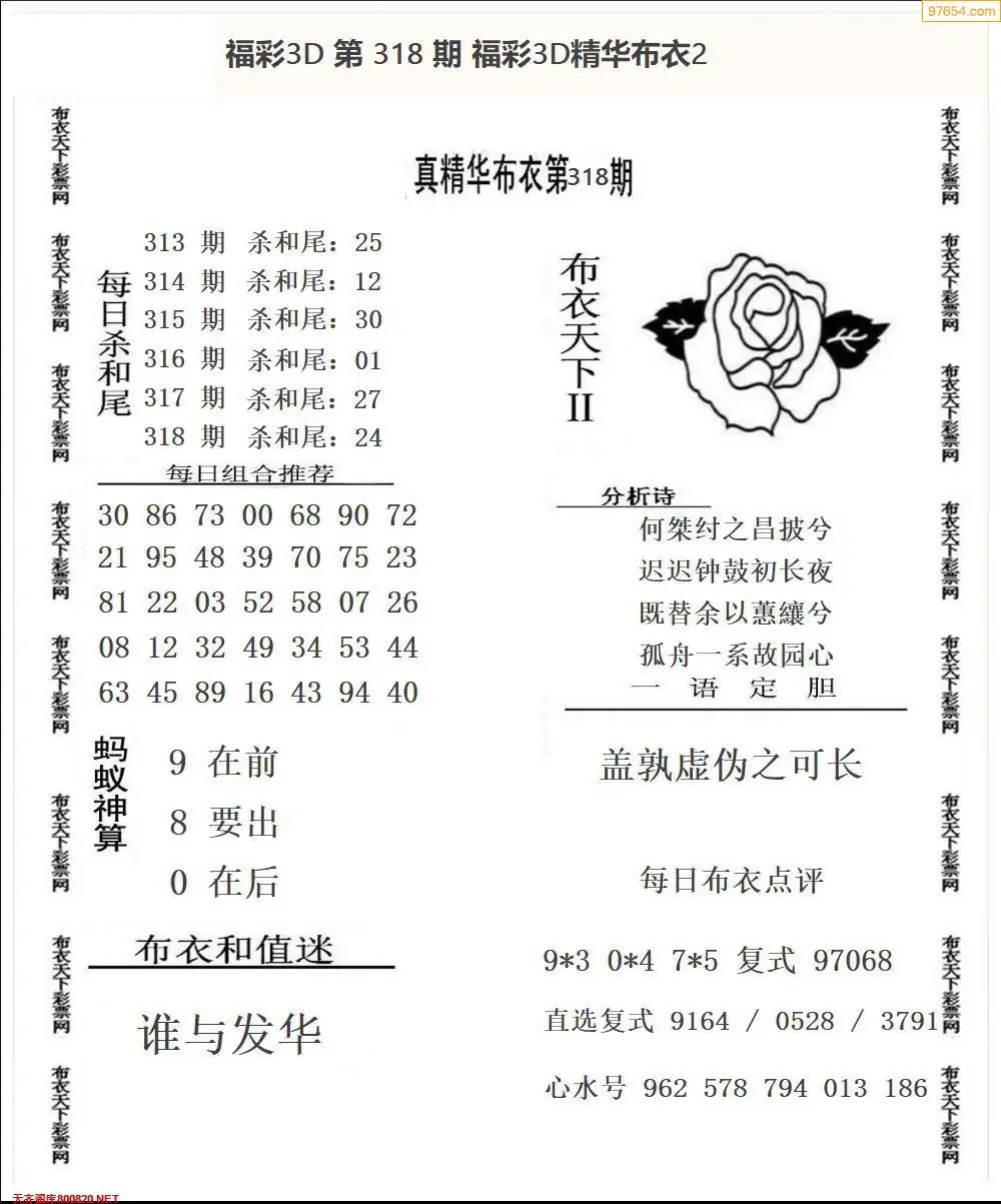 福彩318期3d真精华布衣+布衣早报(转载)
