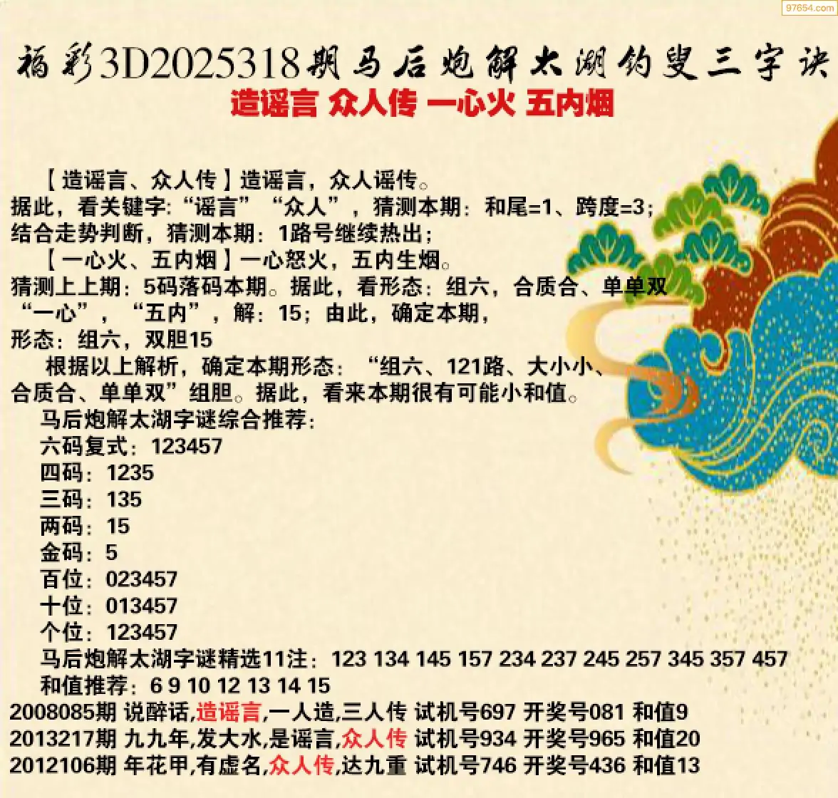 25318期福彩3d太湖钓叟三字诀历史汇总
