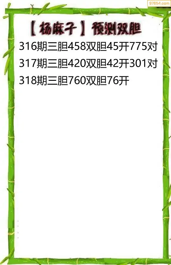 318期97654本站收集胆码出号预测