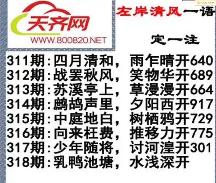 福彩3d左岸清风25年318期一语定一注