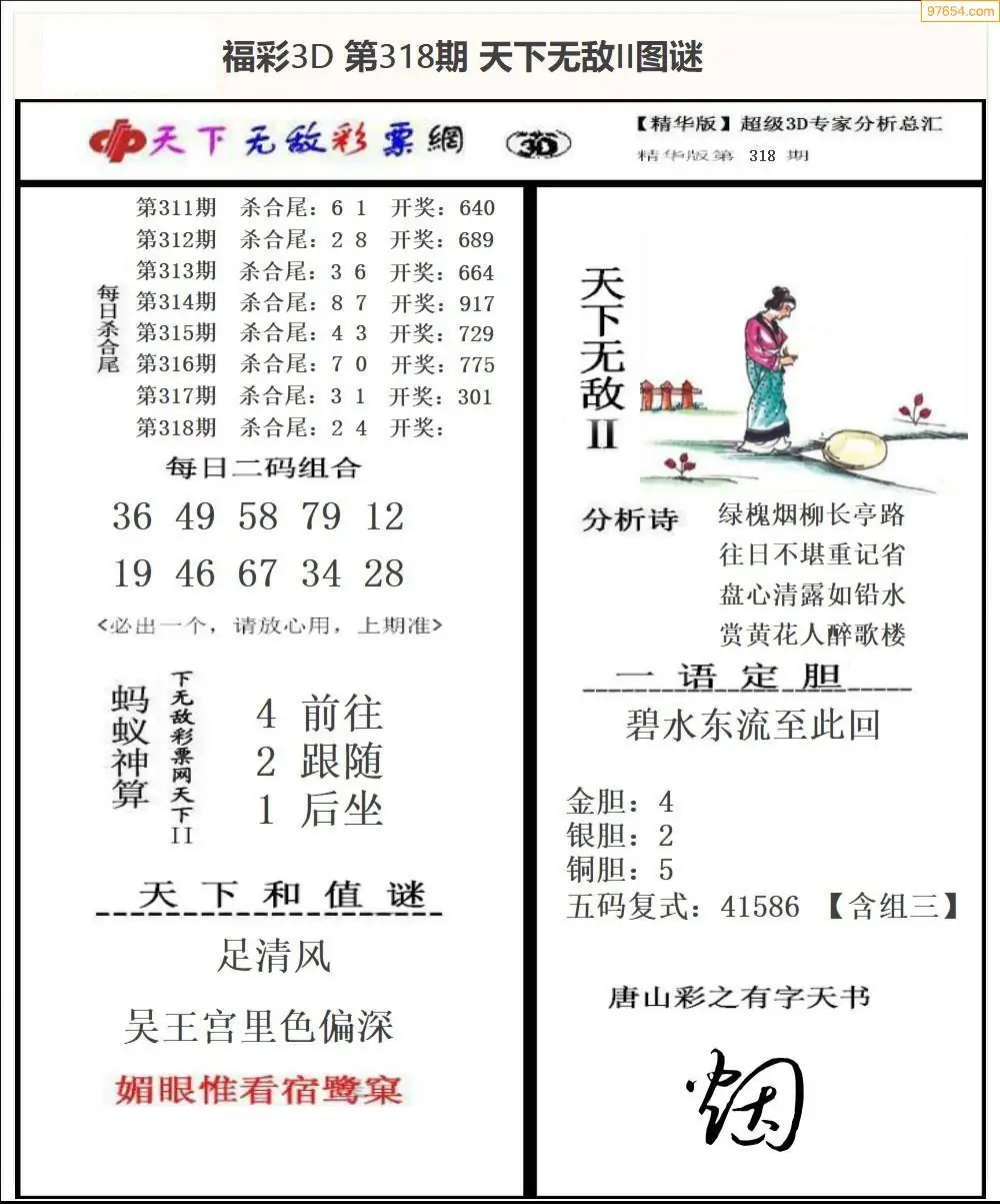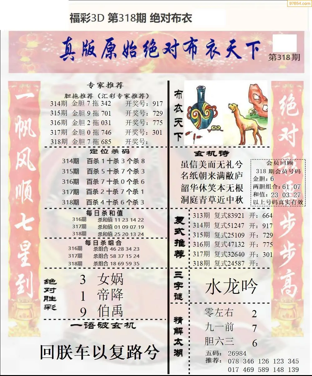 福彩3D318期天牛彩吧套图整合总汇