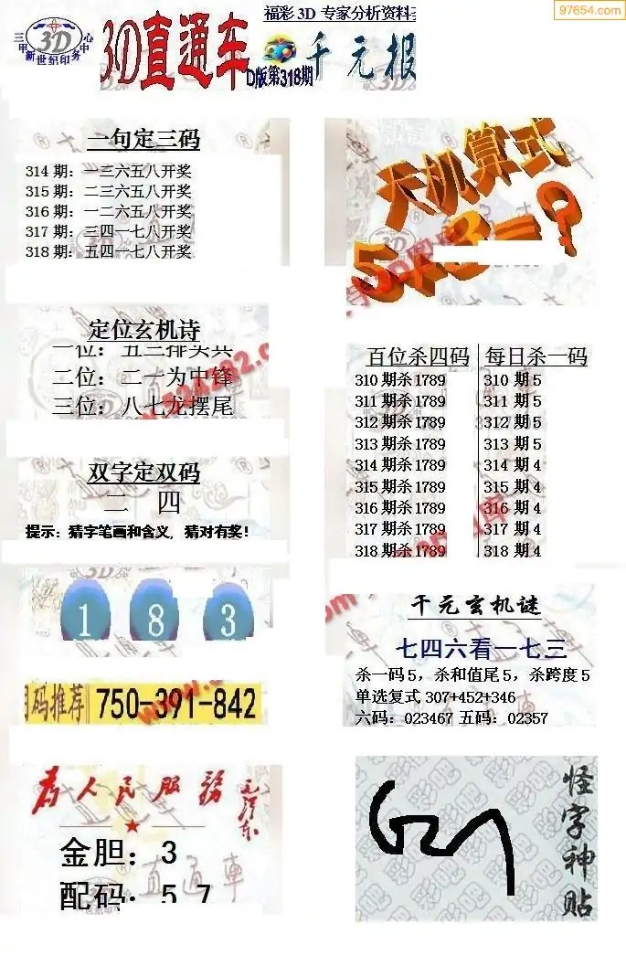 25年318期3d选号彩报图谜画谜