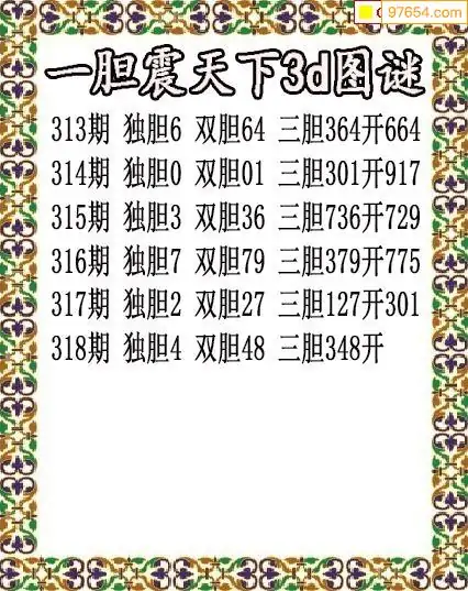 318期97654本站收集胆码出号预测