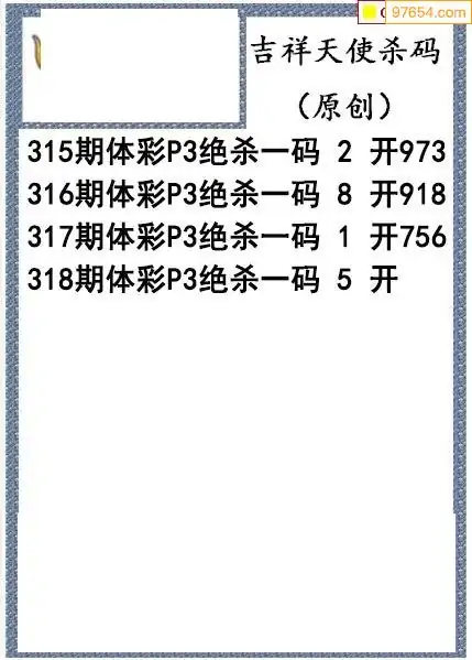 25年318期吉祥天使今日杀码图谜