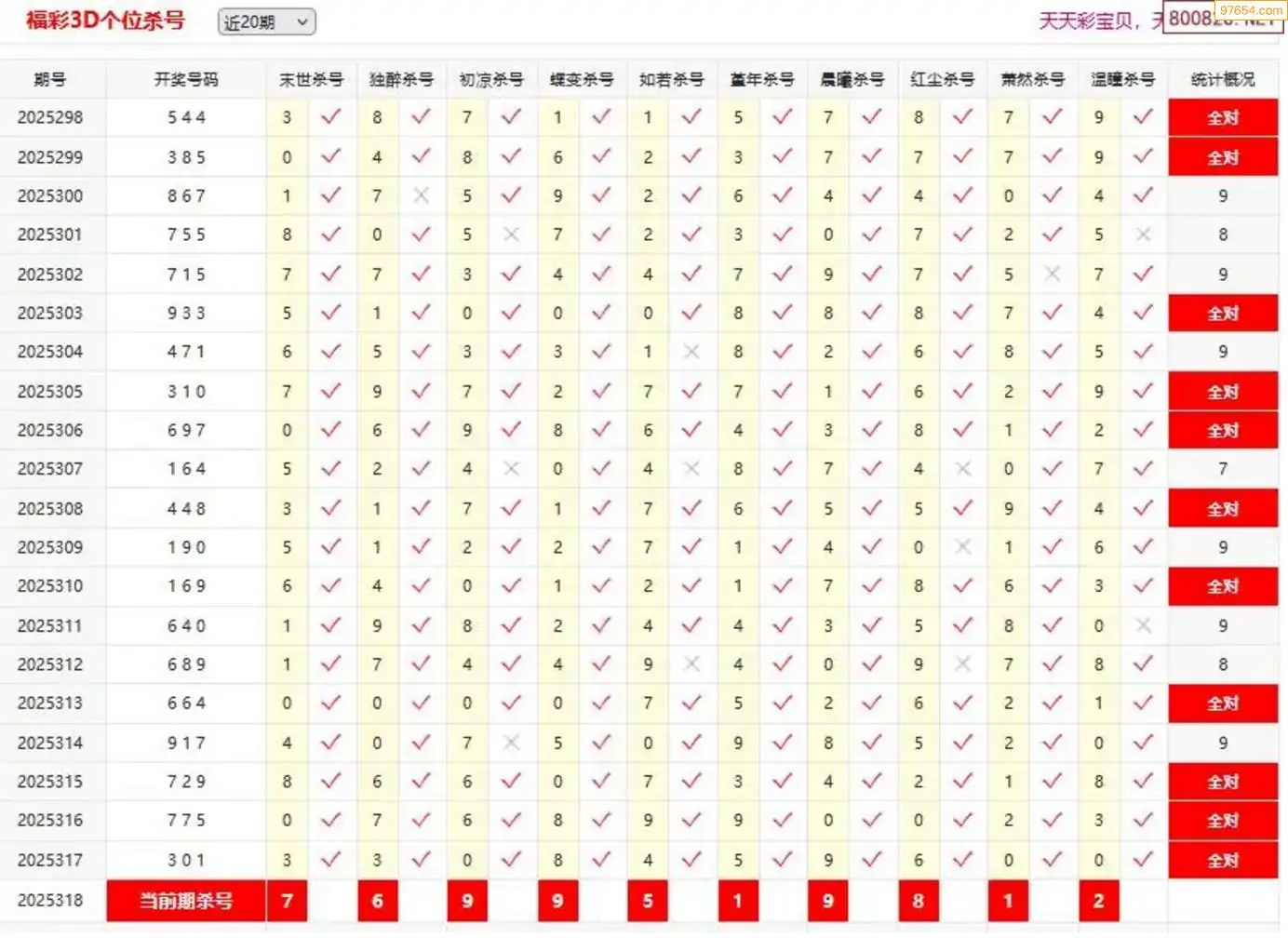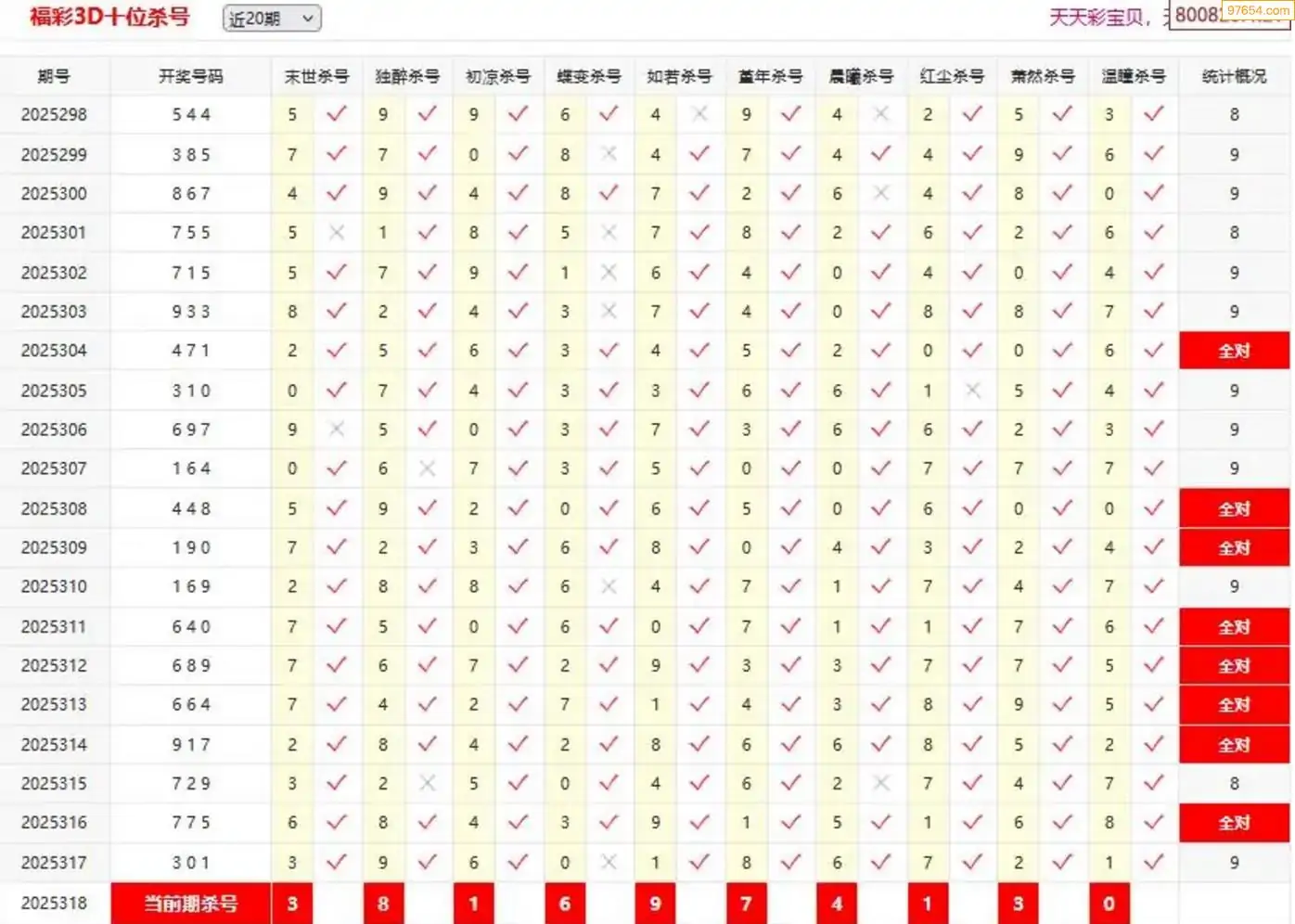 3D318期天中财神原创杀码条件汇总