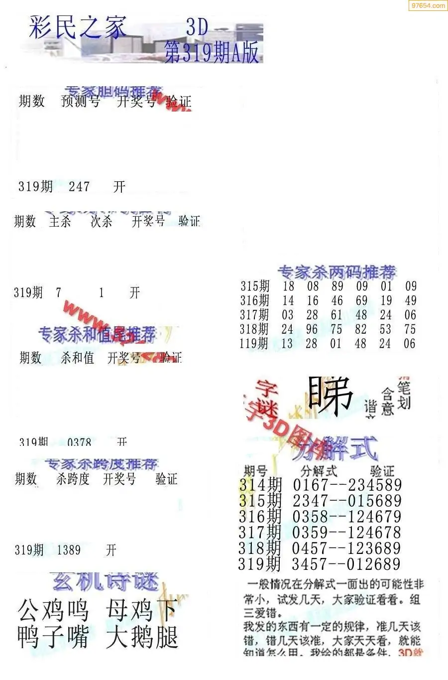 25319期3D彩民各类资料A版