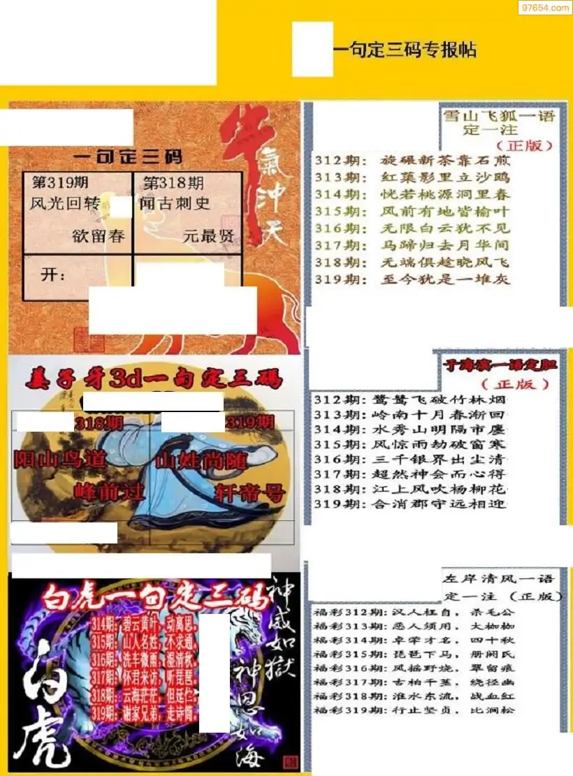 25年319期3d选号彩报图谜画谜