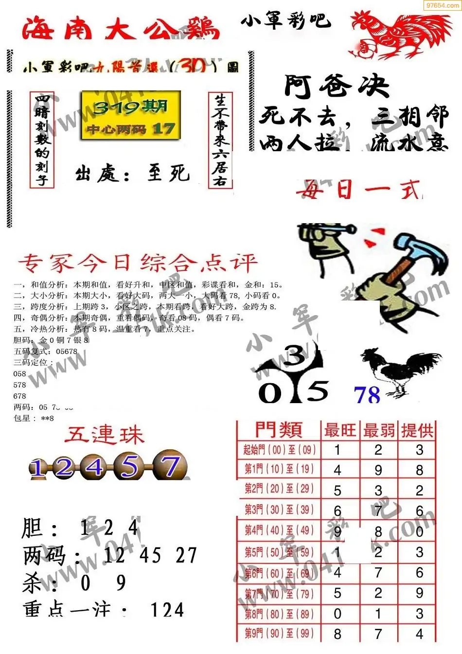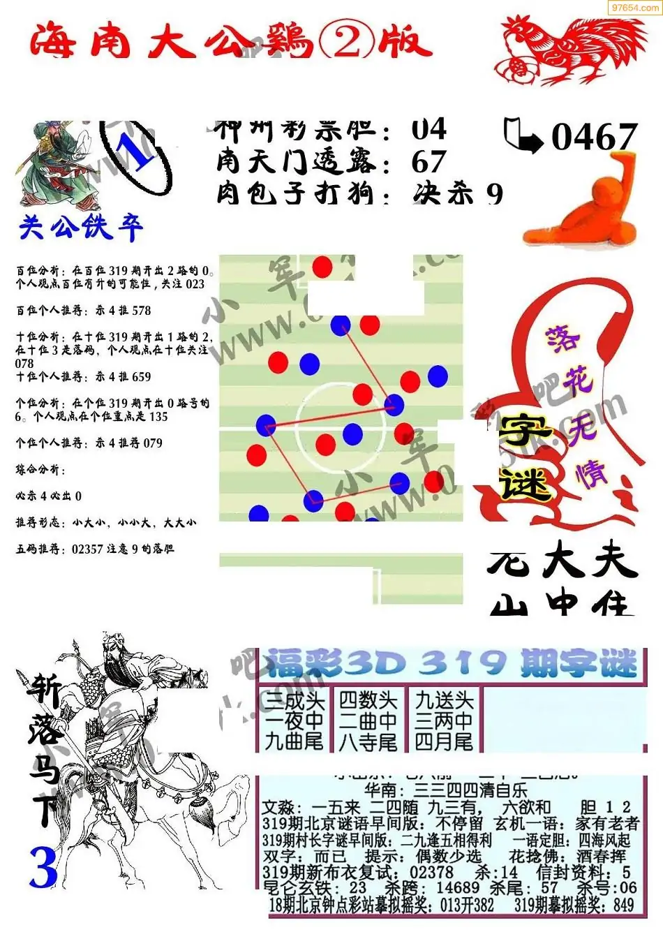 25年319期3d选号彩报图谜画谜
