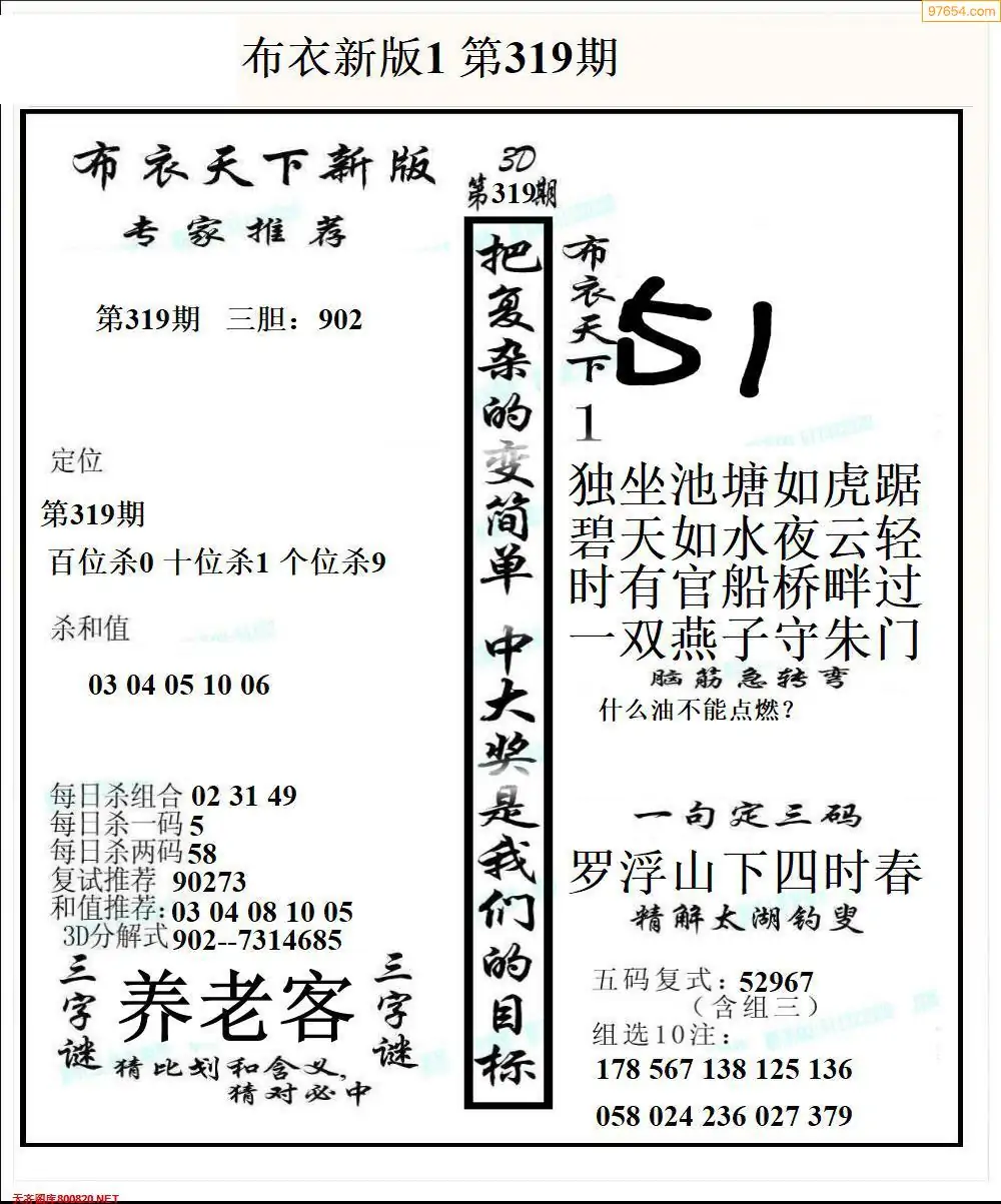319期真版布衣神算专家推荐