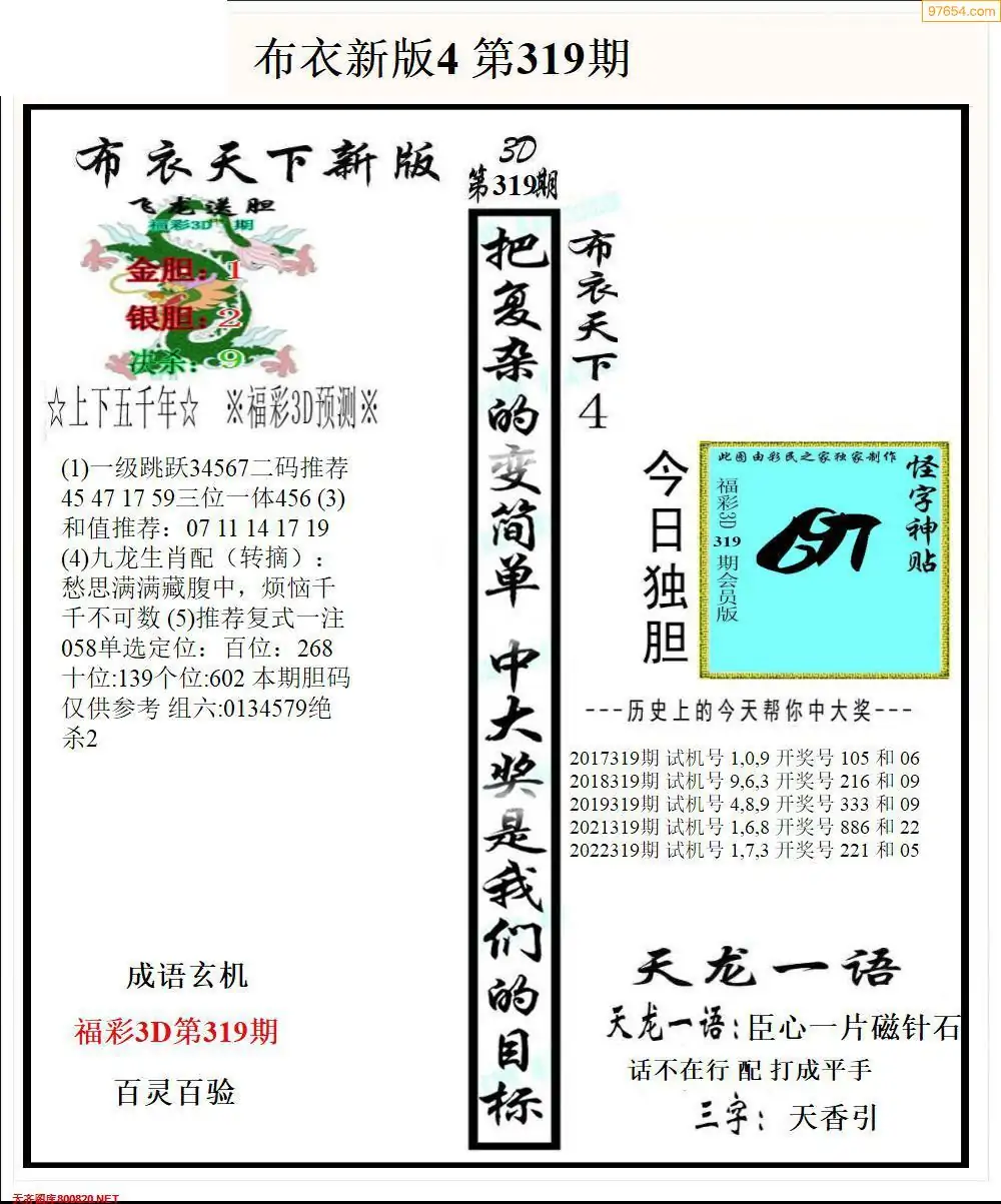 25319期早版布衣天下3D图迷