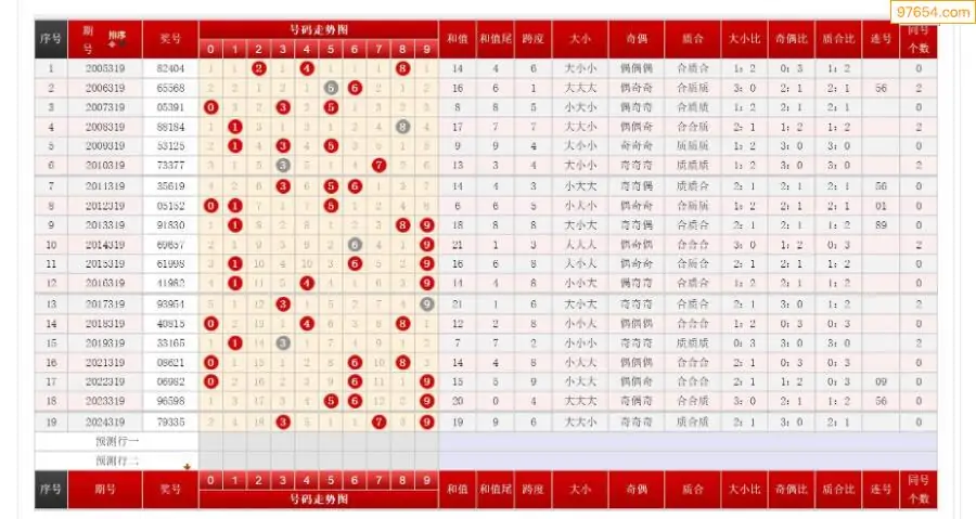 319期排列三历史号码对比图+数据走势分析