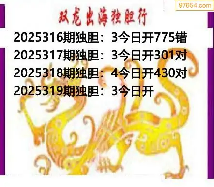 319期97654本站收集胆码出号预测