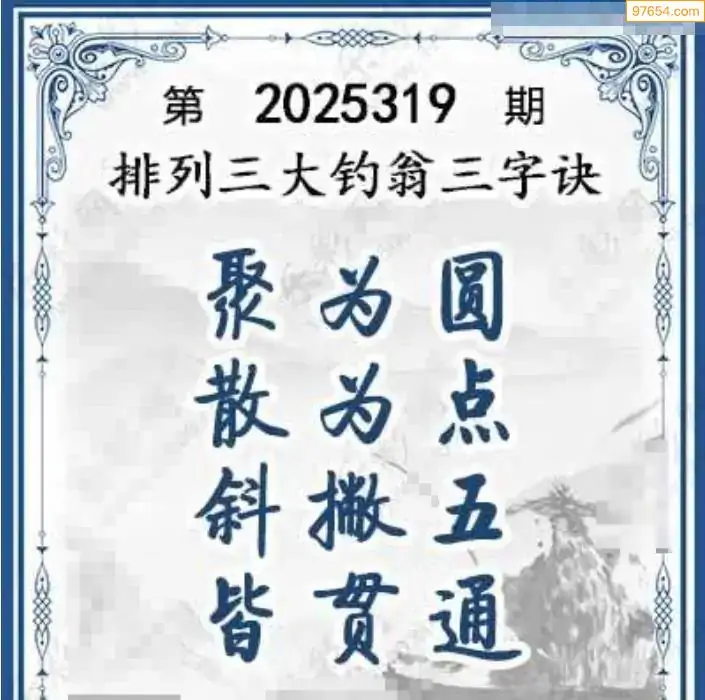 25年体彩p3第319期大钓翁三字诀