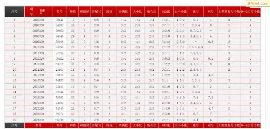 320期体彩P5历史同期对比图表+近期走势图分析