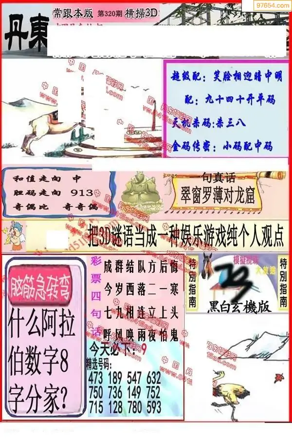 340期3D牛彩预测报+彩吧字谜报
