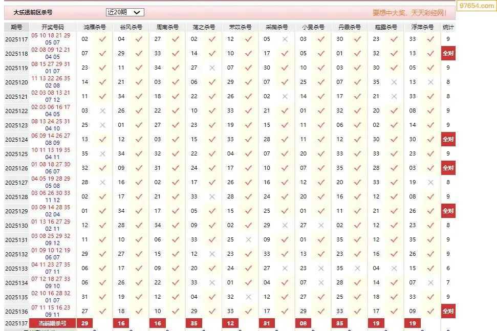 137期大乐透彩经十大专家前区杀号汇总