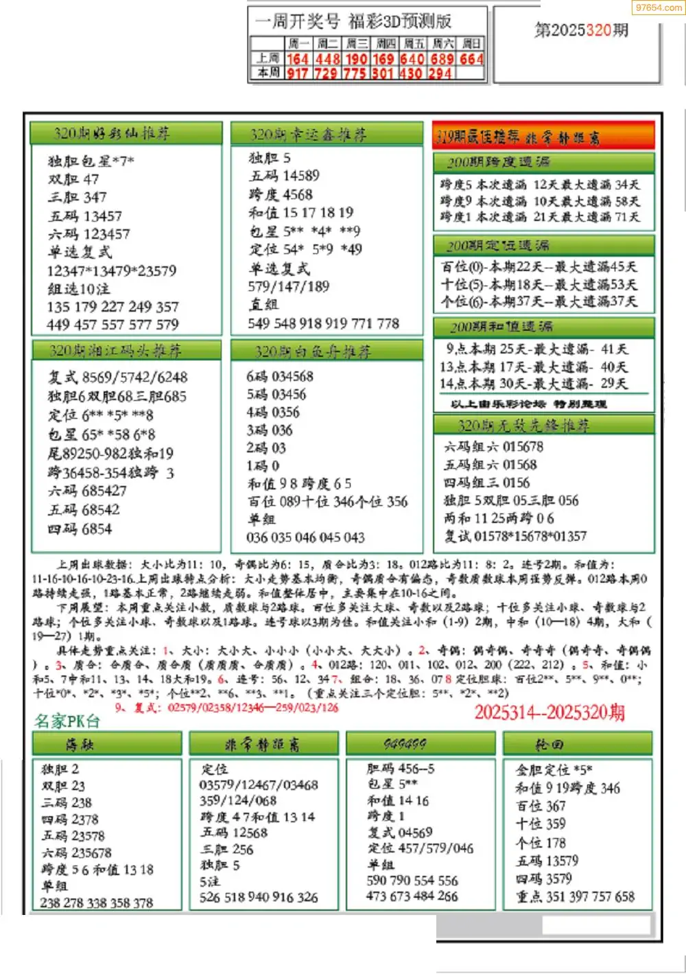 320期3d直通车新版预测推荐