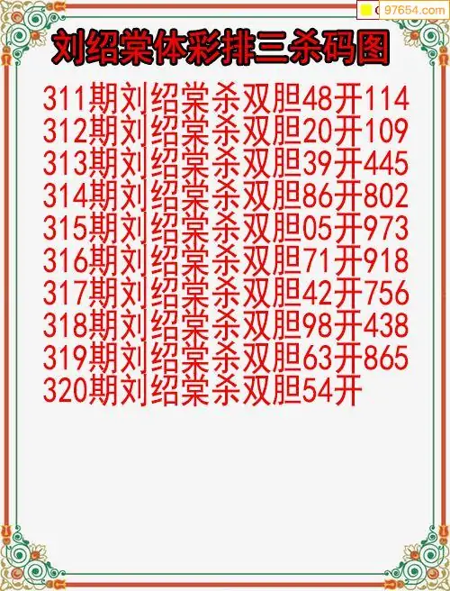 25年320期体彩排三刘绍棠杀码图