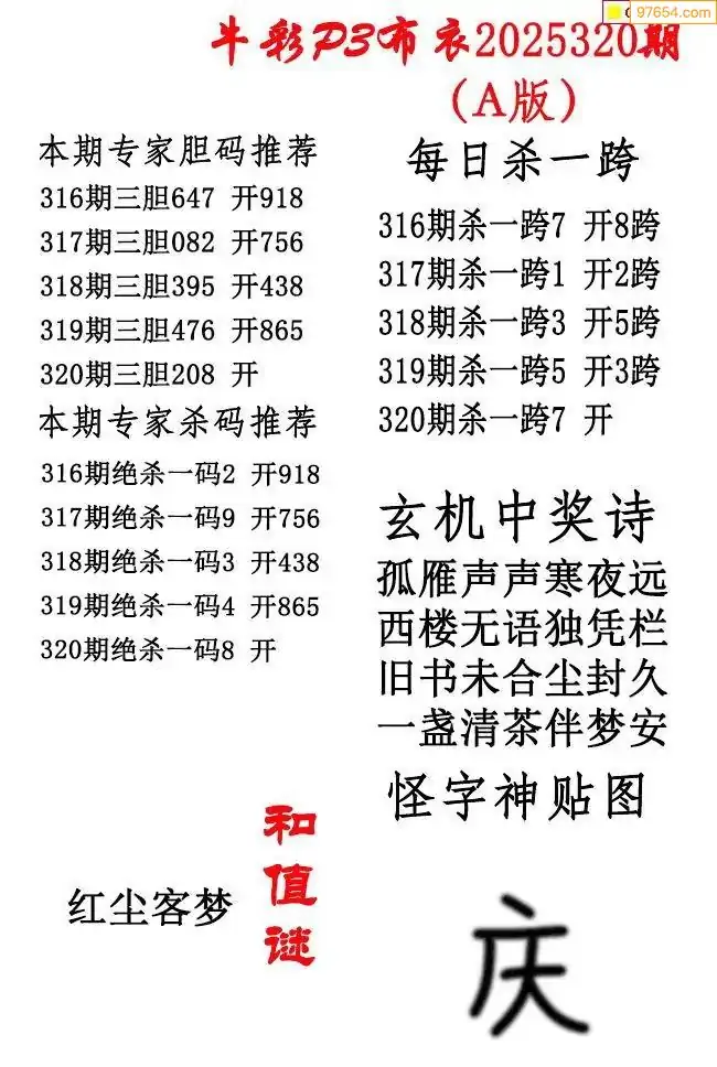 2025342期彩友图迷汇总_体彩排列三字谜图谜总汇最新更新