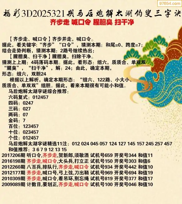 25年321期马后炮解3d太湖钓叟之 齐步走