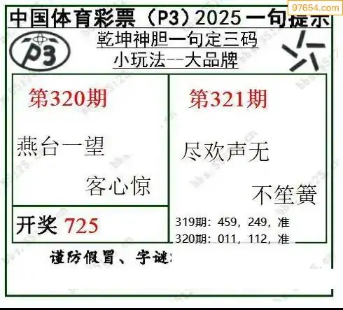 2025342期彩友图迷汇总_体彩排列三字谜图谜总汇最新更新