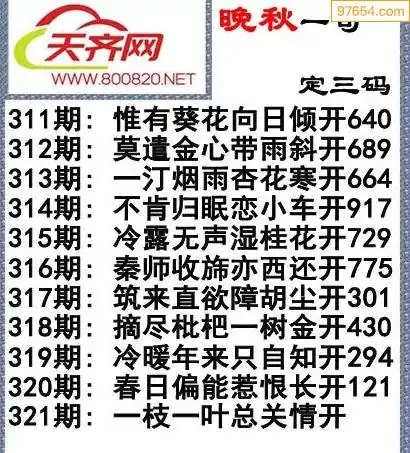 321期3d福彩今日晚秋字谜一句定三码