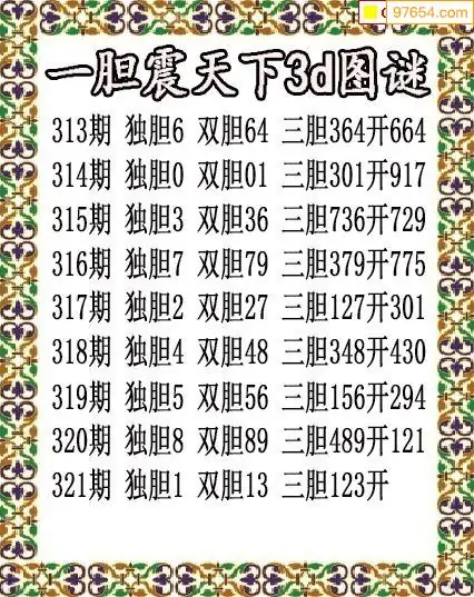 321期97654本站收集胆码出号预测
