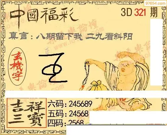 2025年321期福彩3d怪字神贴