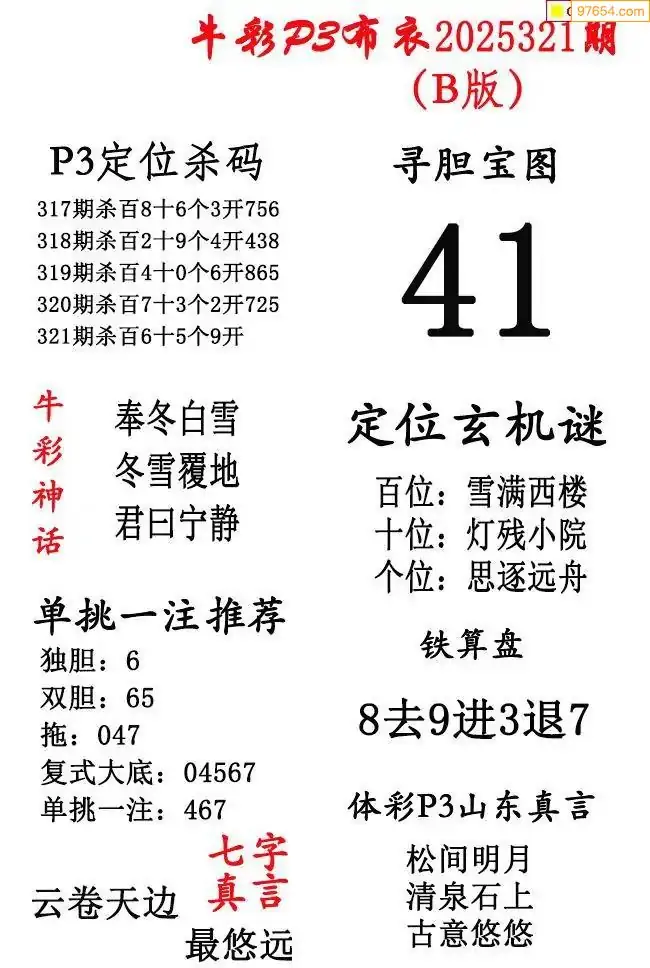 2025342期彩友图迷汇总_体彩排列三字谜图谜总汇最新更新