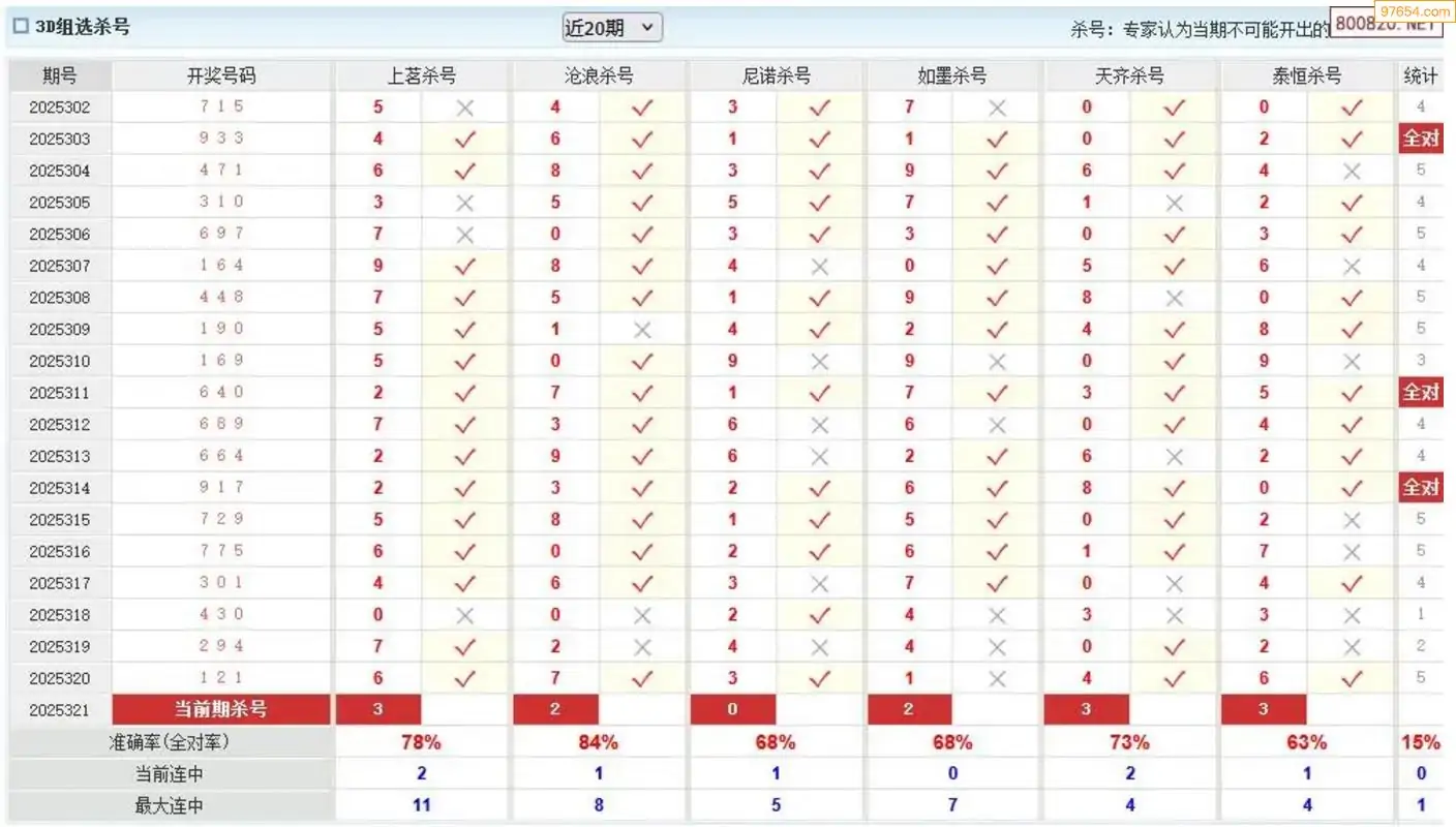 杀号王今晚3d杀一号码321期 15连中