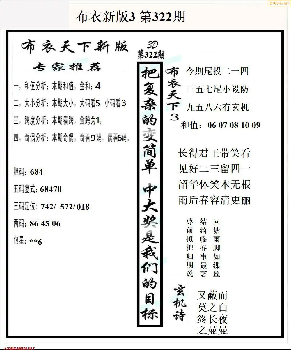 福彩326期3d真精华布衣+布衣早报(转载)