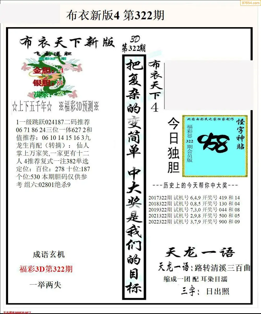 326期3D彩吧图库精华布衣图123456分享