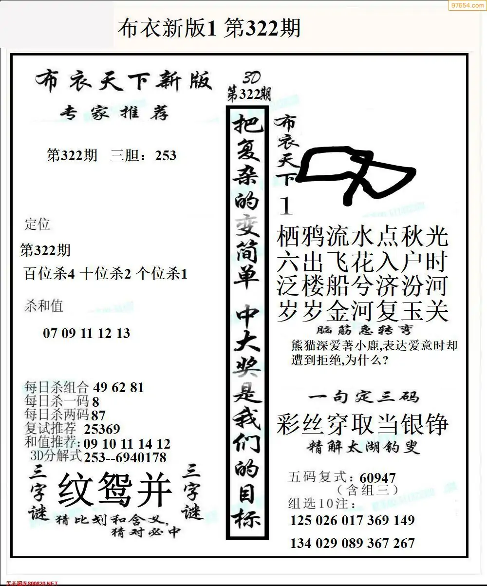 福彩25326期布衣3d字谜ab