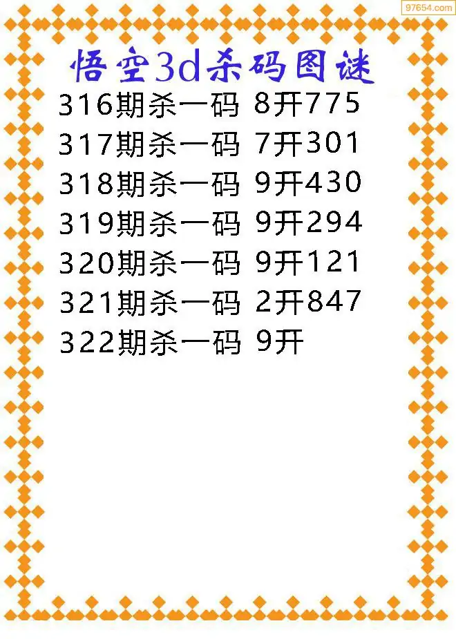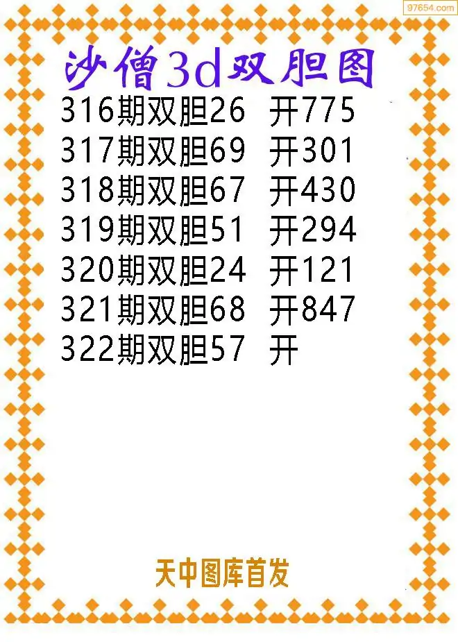 322期97654本站收集胆码出号预测