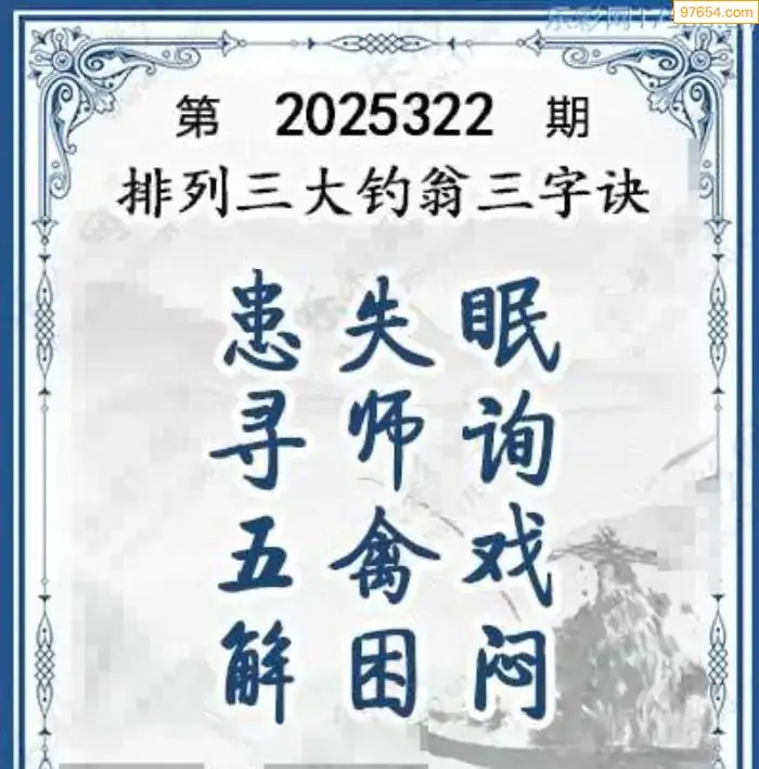 25年体彩p3第322期大钓翁三字诀