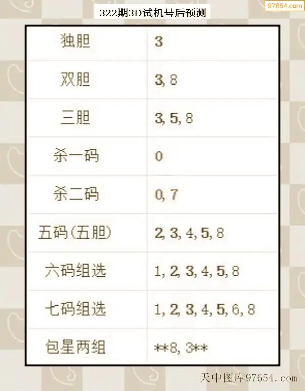 3D322期陈哲友福彩试机号后一语定胆(原创)
