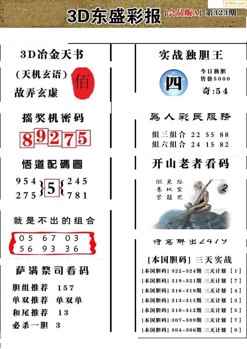 (8)25年322期今日3d各类彩报汇总