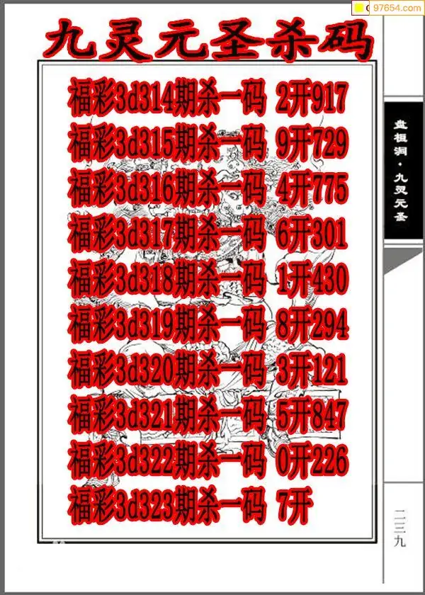 牛彩网323期福彩杀码图汇总 杀:90