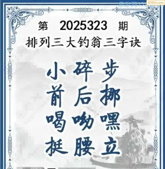 25年体彩p3第323期大钓翁三字诀