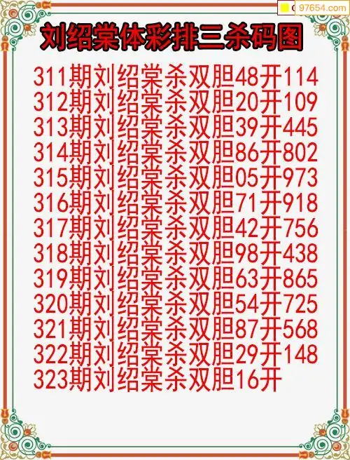 25年323期体彩排三刘绍棠杀码图