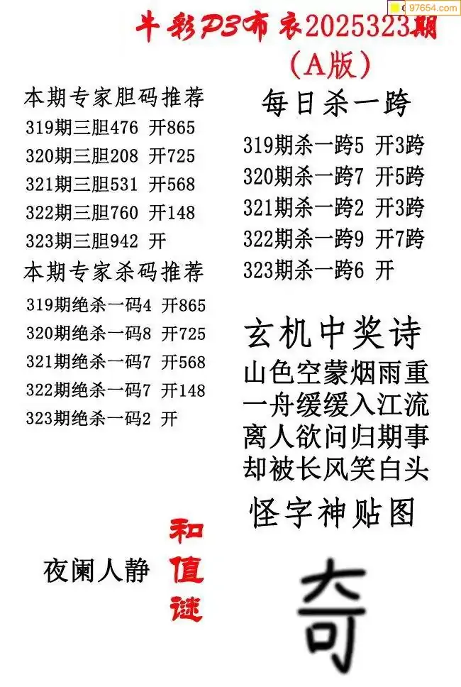 2025342期彩友图迷汇总_体彩排列三字谜图谜总汇最新更新