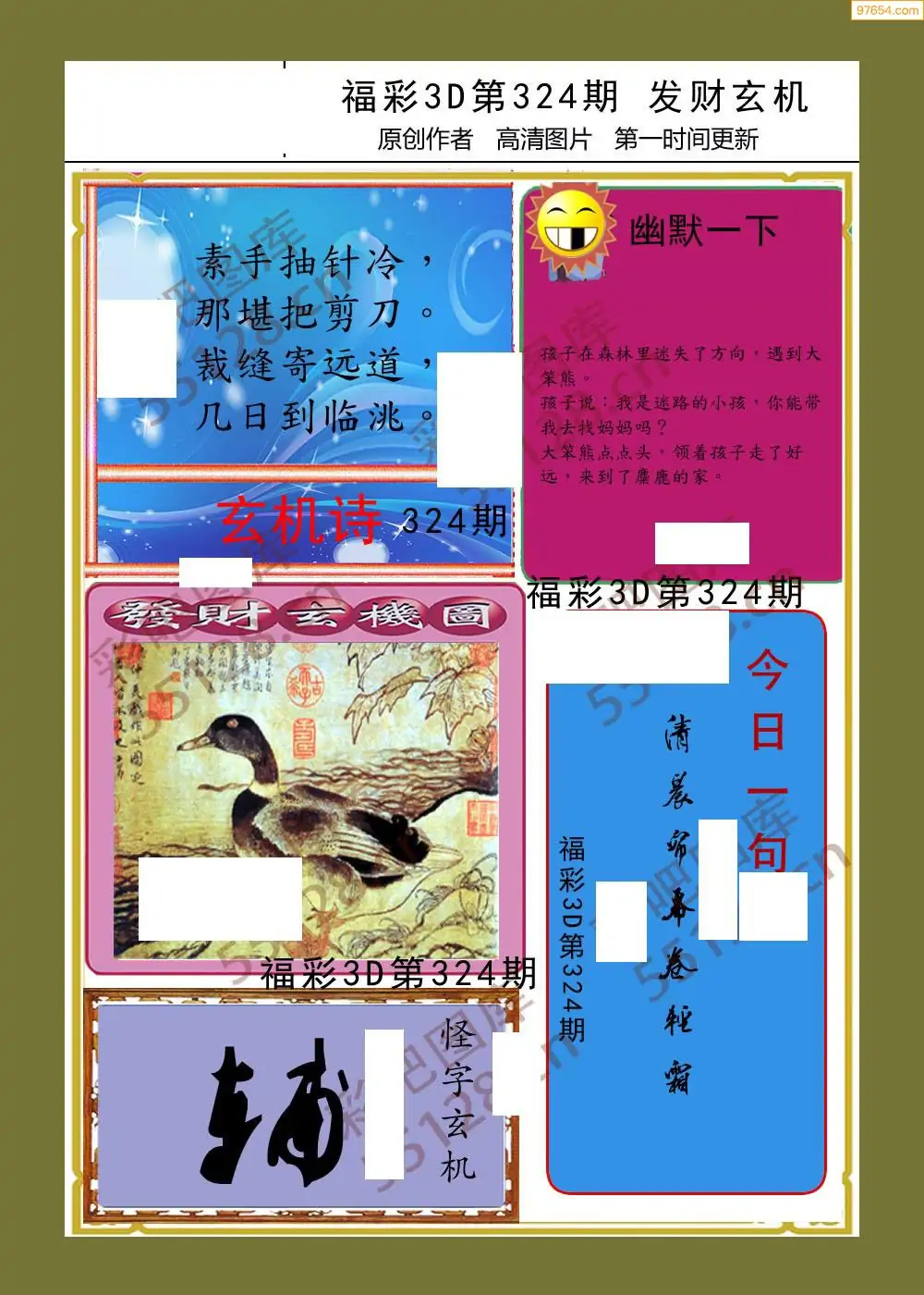 329期福彩天机壁怪字图