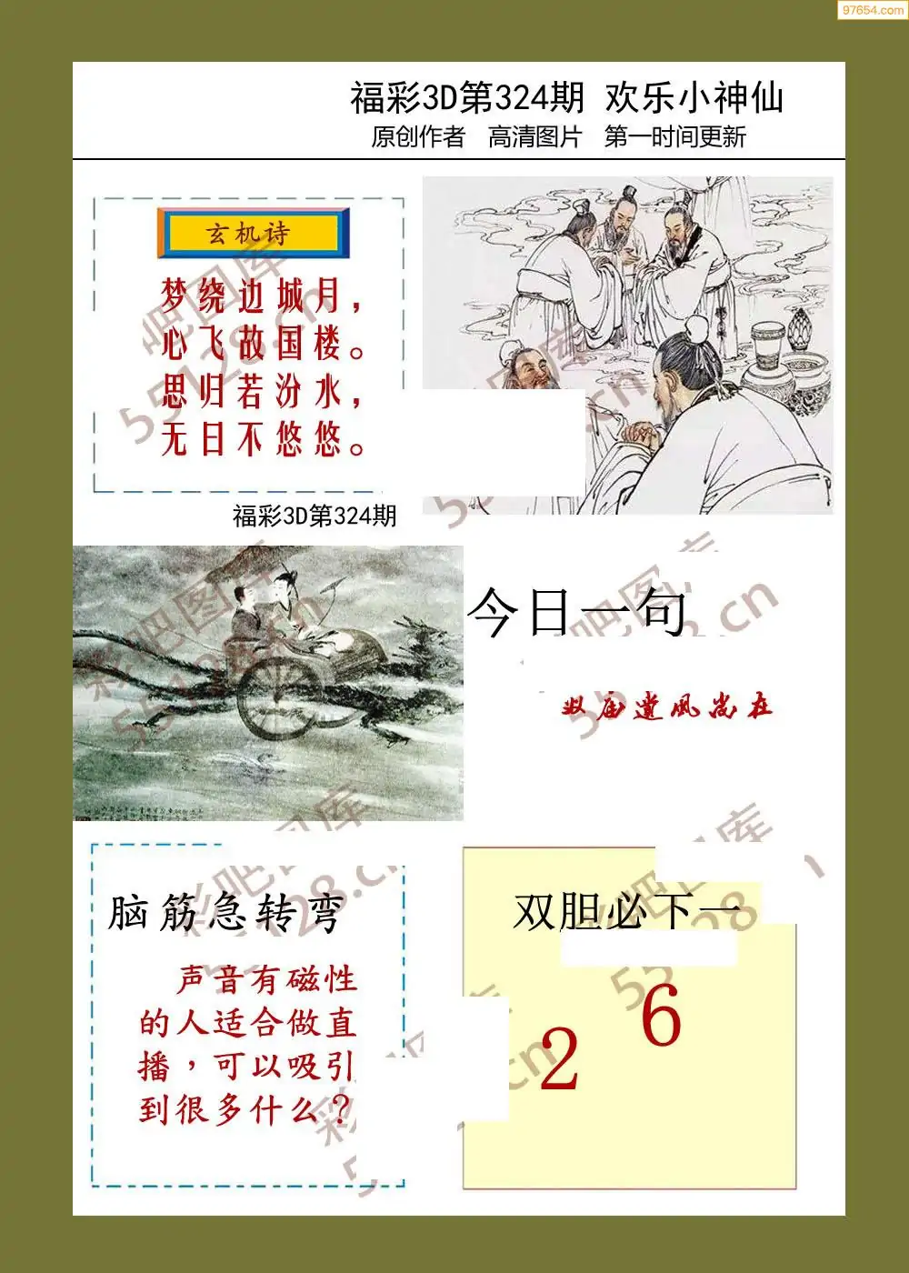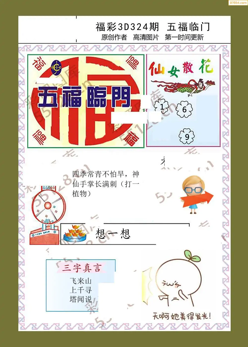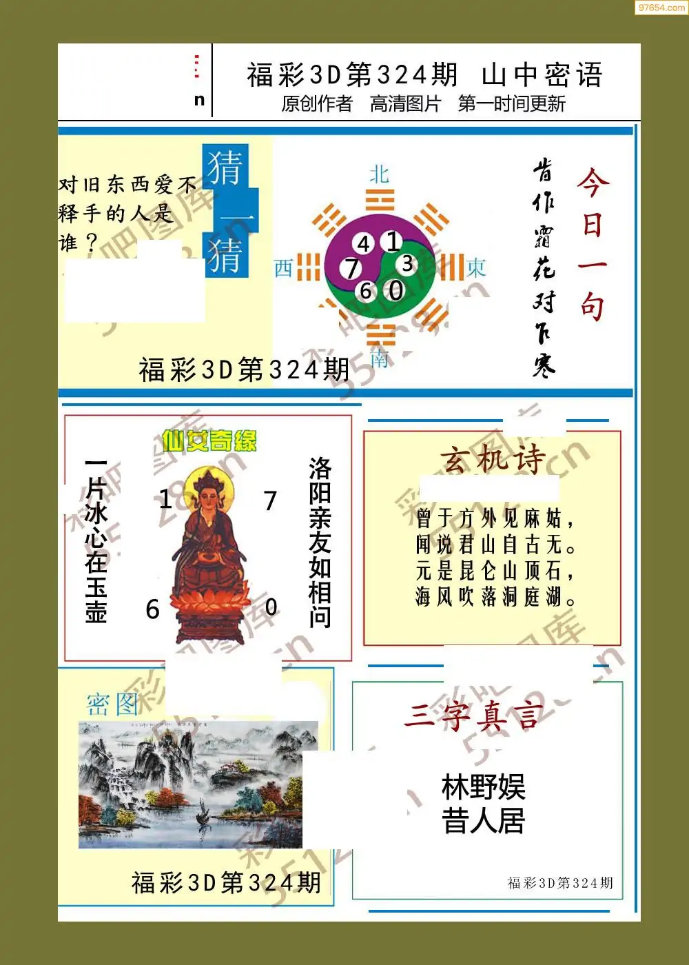 福彩3D25329期蓝仙子一句定三码图谜