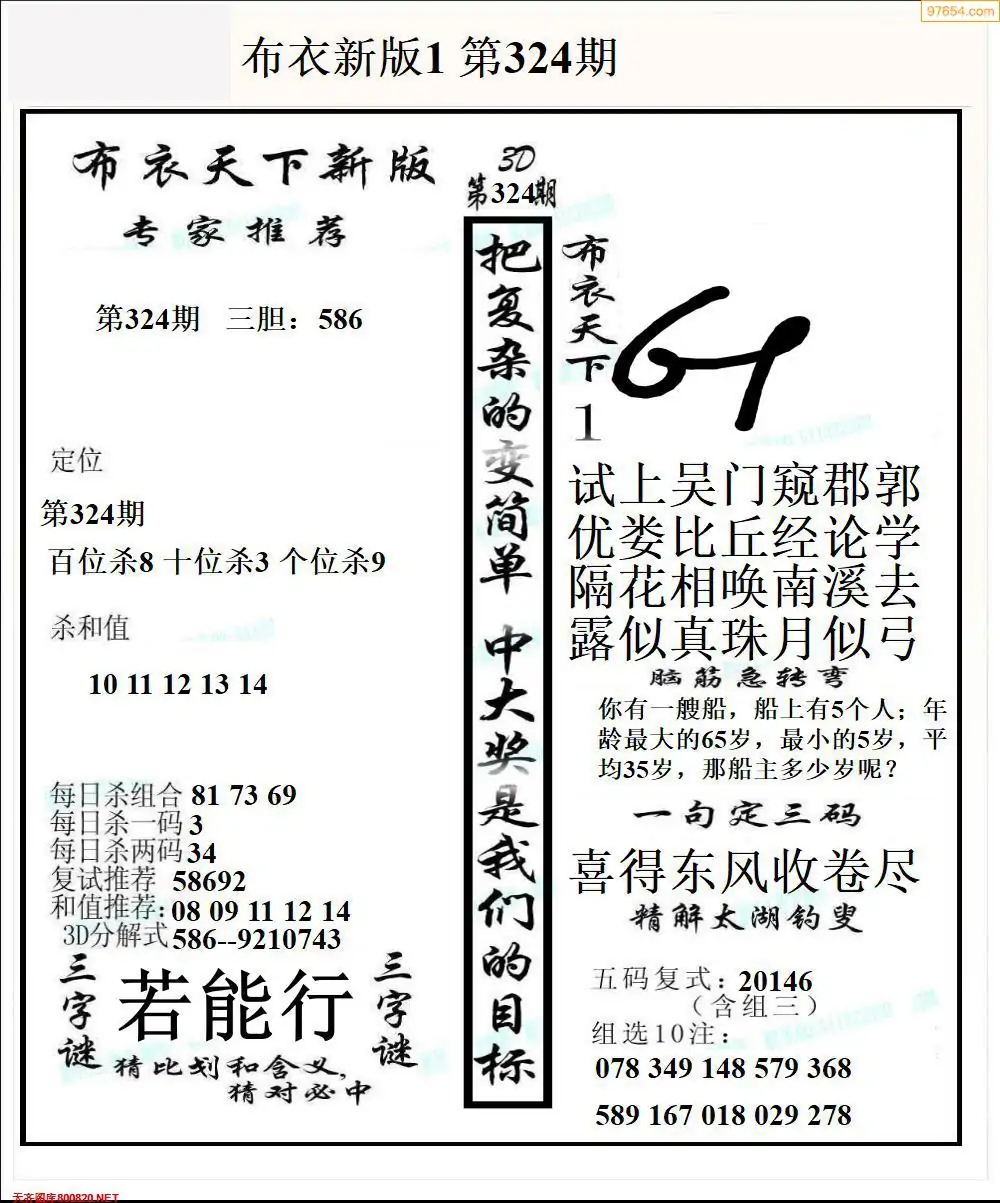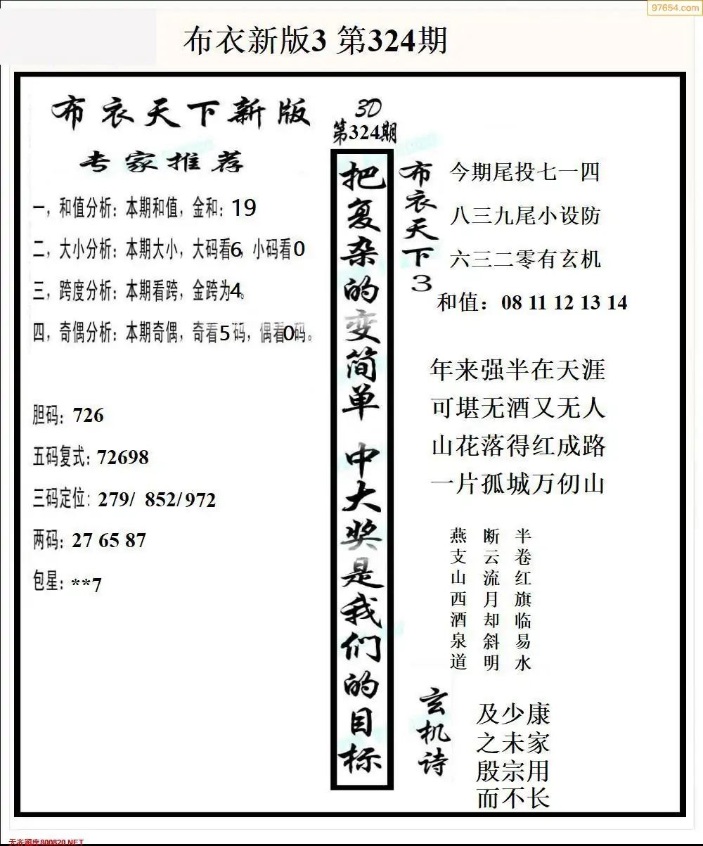 福彩327期3d真精华布衣+布衣早报(转载)
