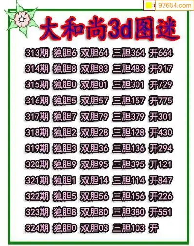 324期97654本站收集胆码出号预测