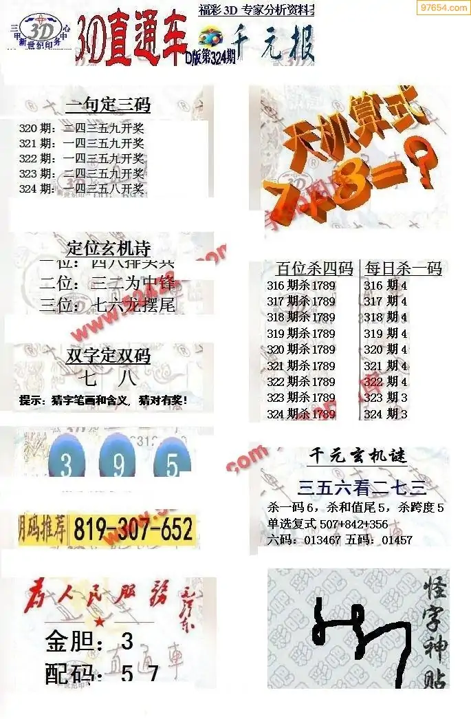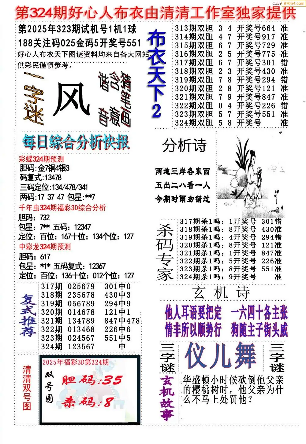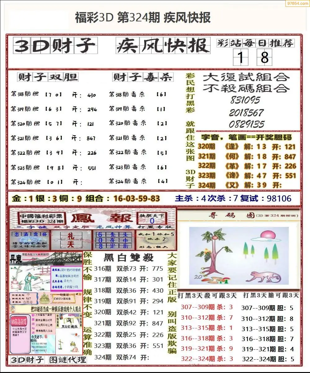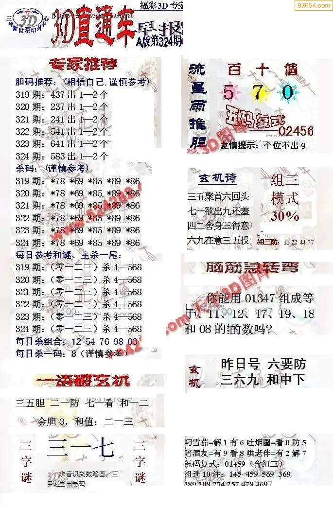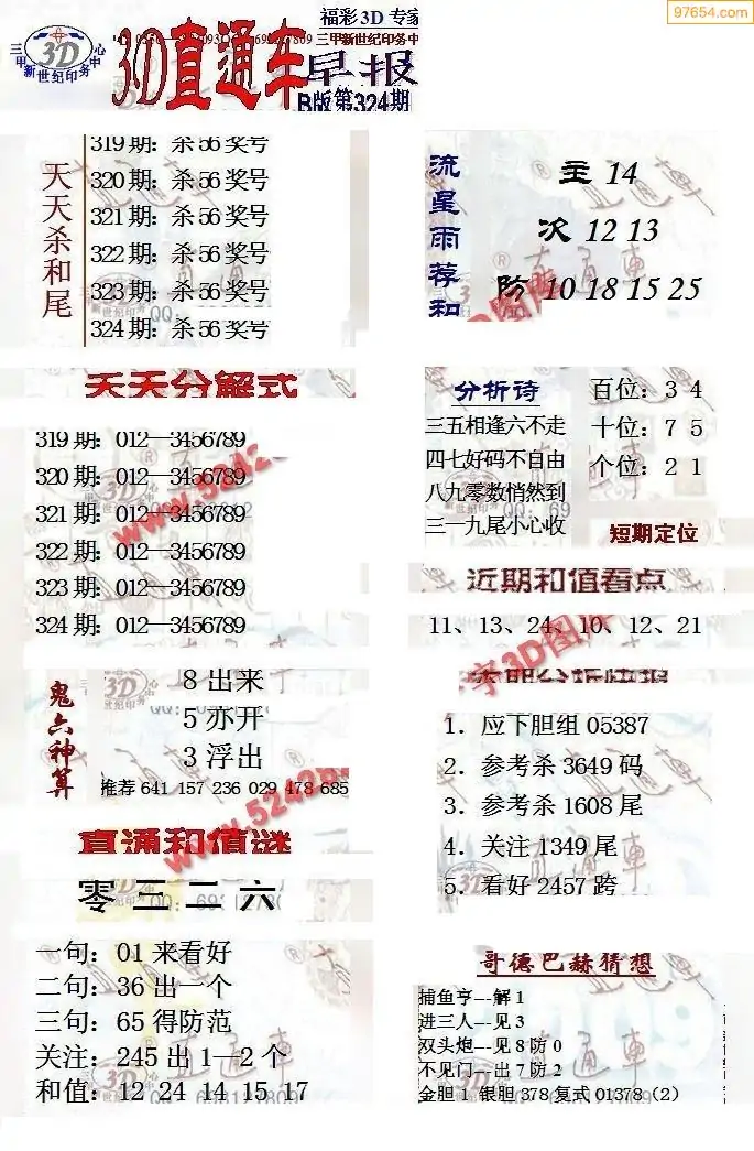 (8)25年324期今日3d各类彩报汇总