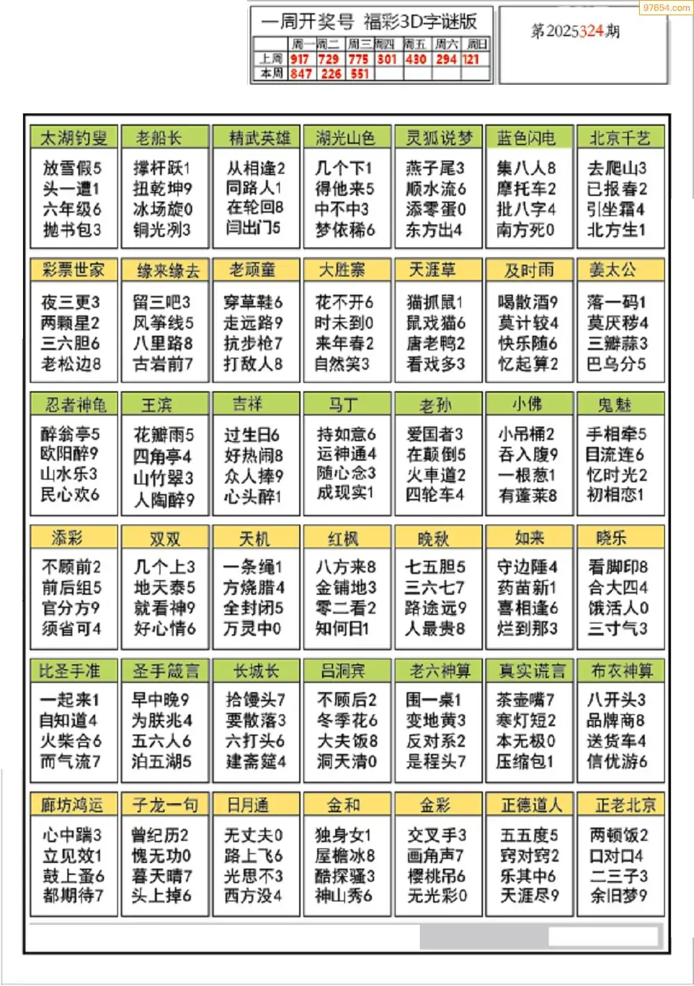 (5)25年323期福彩字谜图谜总汇